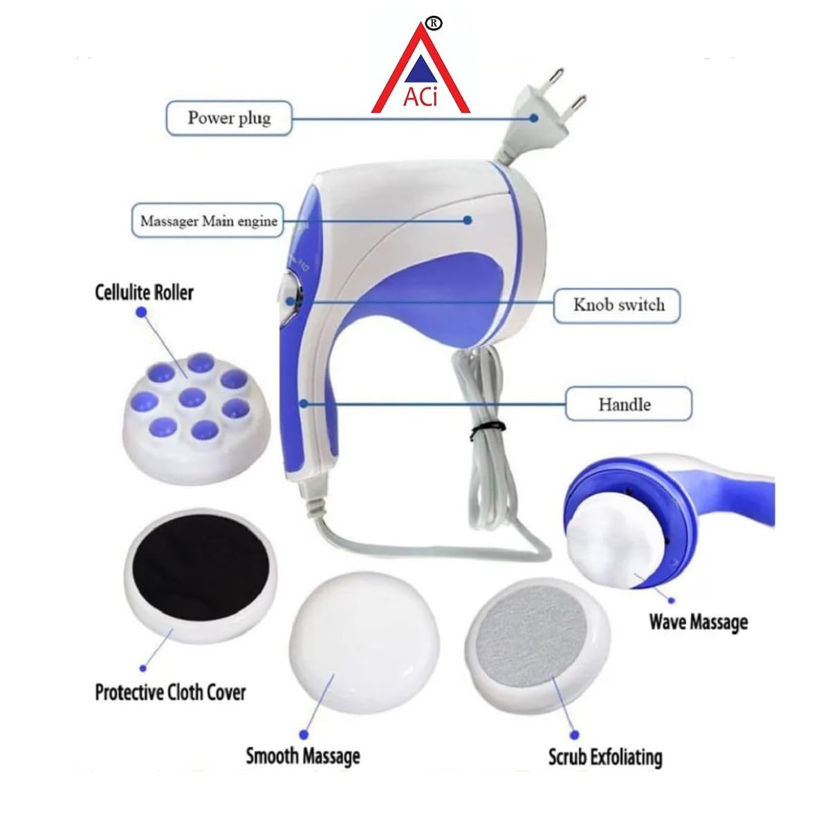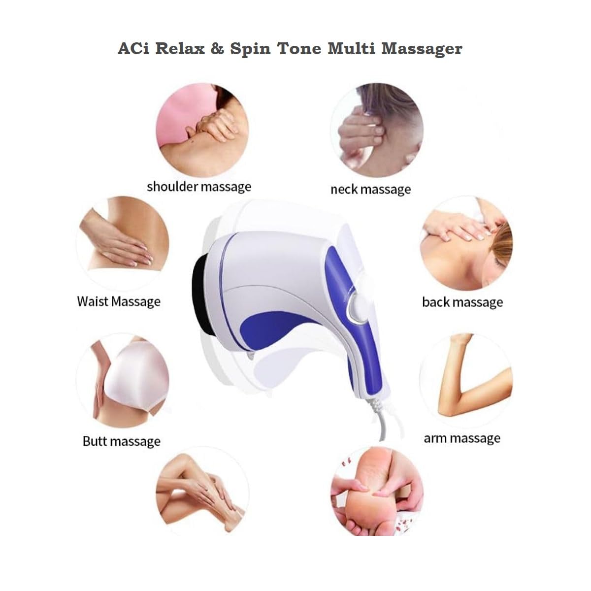 ACi Relax & Spin Tone Handheld Corded Electric Body Massager, Multicolour