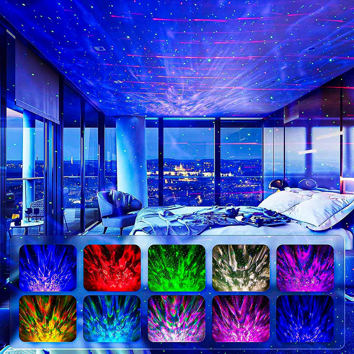 - ✮【GALAXY STAR PROJECTOR + OCEAN WAVE LIGHT】Star projector with 10 colorful 360° rotating dynamic projections and up to 21 lighting modes to create an otherworldly visual experience, Ocean Wave projector is the perfect decoration for a room.